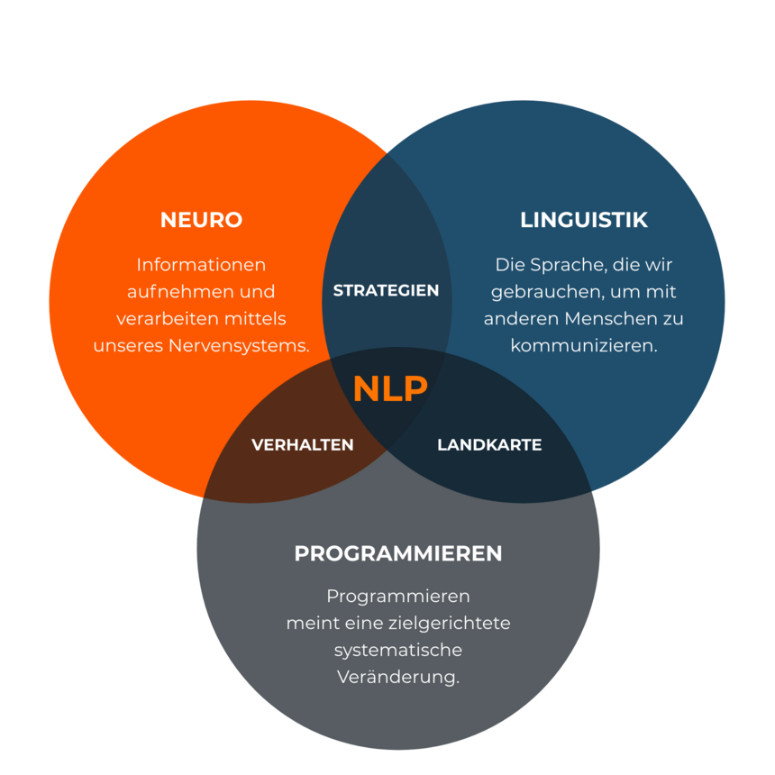 NLP steht für „Neurolinguistisches Programmieren“. NLP ist seit den 70-er Jahren eine sehr erfolgreiche Methode, welche durch das bewusste Anwenden von Sprachtechniken negative Denk- und Verhaltensmuster auflösen und durch positive ersetzen kann.